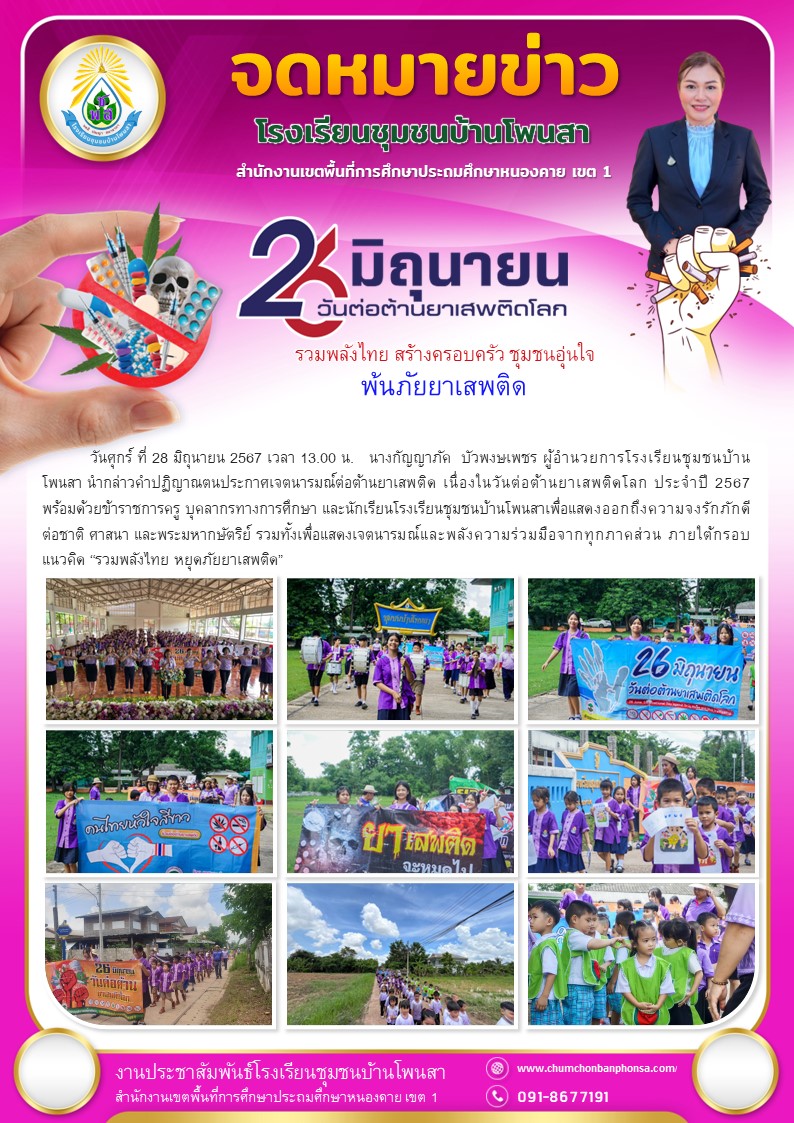 26 มิถุนายน 2567 วันต่อต้านยาเสพติดโลก