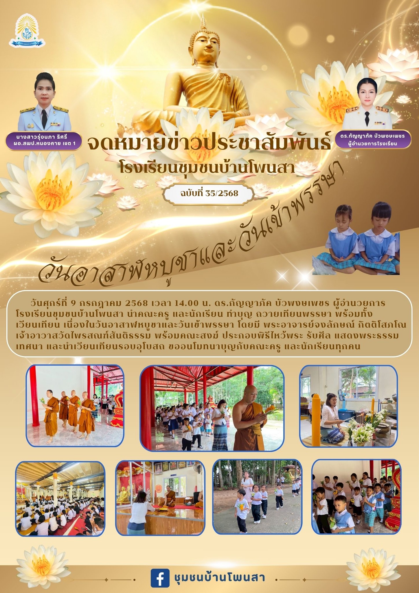 ทำบุญ ถวายเทียนพรรษา พร้อมทั้งเวียนเทียน เนื่องในวันอาสาฬหบูชา และวันเข้าพรรษา